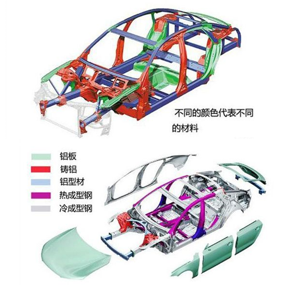 汽车车身外壳绝大部分是金属材料,钢板、碳纤维、铝、强化塑料等,不同用途的汽车外壳、不同部位的材料不同。一般是钢板,奥迪高档车是铝,赛车是碳纤维,悍马H2的引擎盖是强化塑料的。