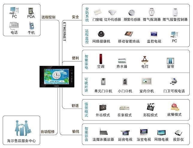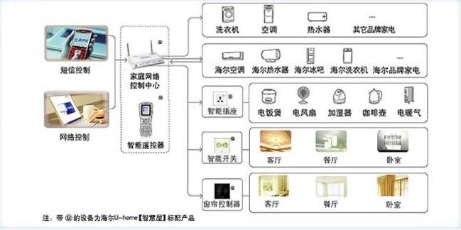 海尔U-home是海尔集团在物联网时代推出的美好住居生活解决方案。它采用有线与无线网络相结合的方式,把所有设备通过信息传感设备与网络连接,从而实现了“家庭小网”、“社区中网”、“世界大网”的物物互联,并通过物联网实现了3C产品、智能家居系统、安防系统等的智能化识别,管理以及数字媒体信息的共享。