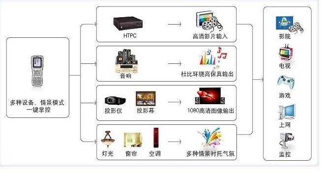 智能化高清家庭影院,场景支持一键切换,可省掉所有反复复杂的操作。