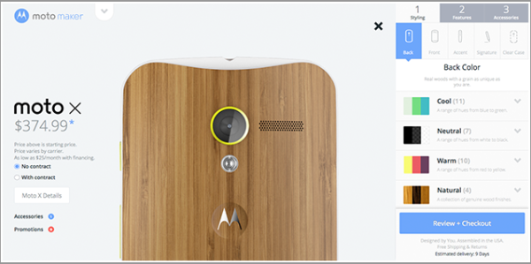 摩托罗拉的MOTO X手机可以定制木质外壳(图片来自MOTO
