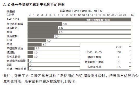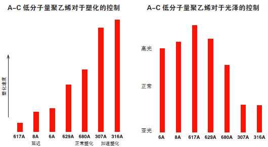 ● A-C 聚乙烯有相对高的软化点,在PVC 高温加工的情况下,能保持有效的