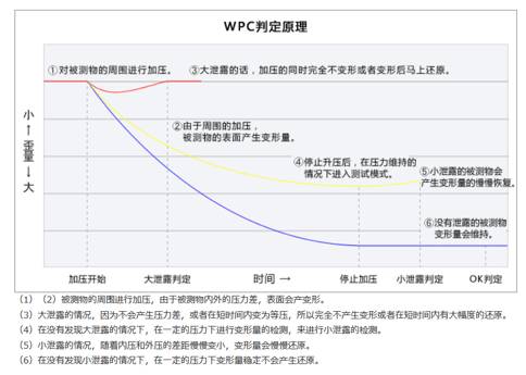 压差方式:必须准备两个被测物,一个完全没有泄露的被测物(合格品),一个需要检测的被测物(待测物)内部同时进行加压,如果测试的被测物有泄露,通过压力的差距就可以判定泄露。