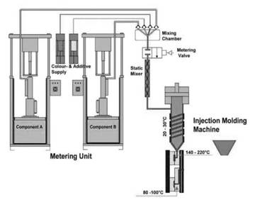 ➁混合器:静态混合器是注射成型中的关键的部件,A、B胶只有静态混合器充分均匀混合后,才能保证注射到模具中液态硅胶完全硫化成型。