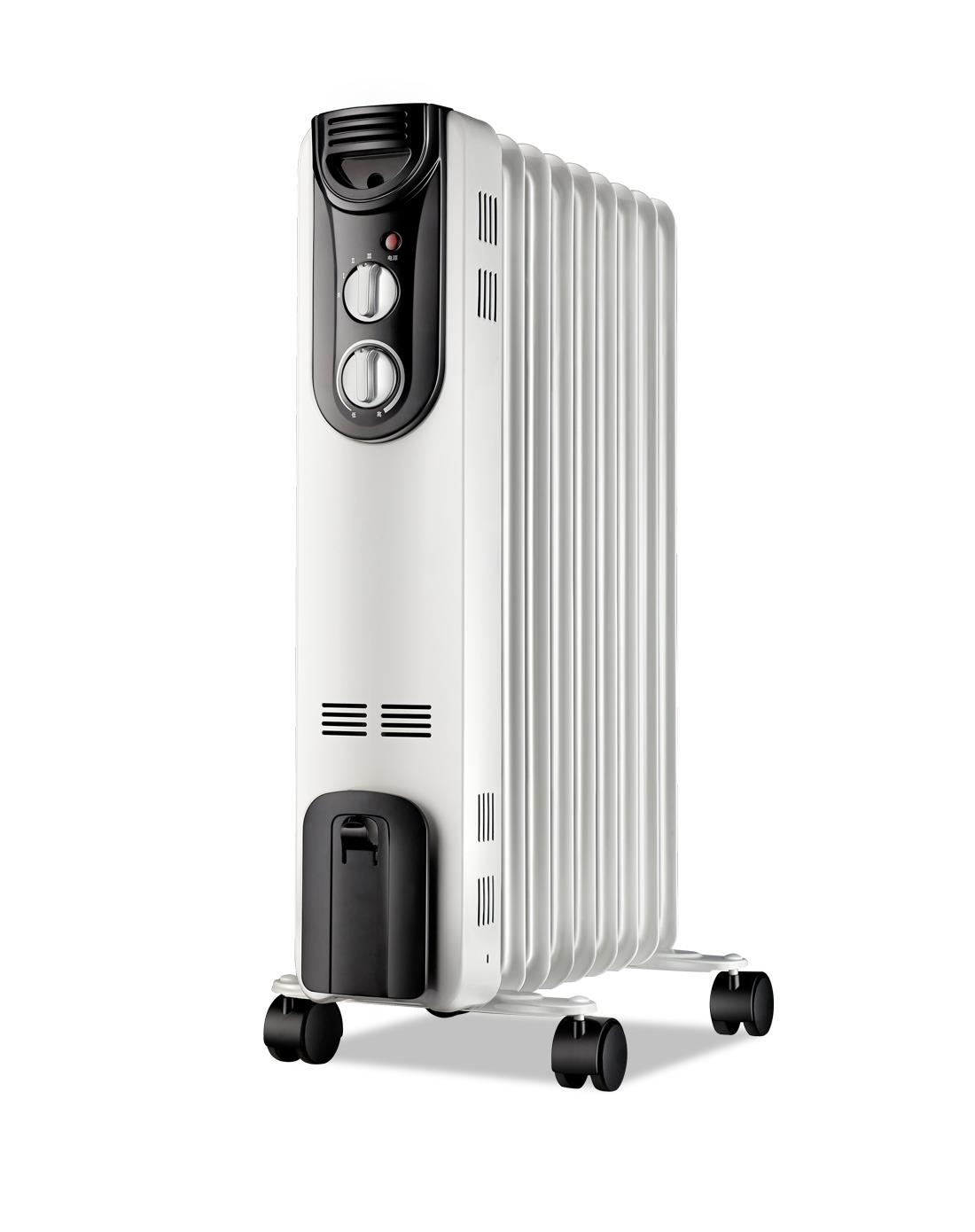 油式电暖器体内充有导热油,当接通电源后,电热管周围的导热油被加热,然后沿着热管或散片将热量散发出去。当油温达到85℃左右,其温控元件即自行断电。产品使用寿命适中,适合在客厅、卧室、过道及有老人和孩子的家庭使用。油汀散热片有7片、9片、10片、12片等,可通过选择散热片的多少来调功率的大小。