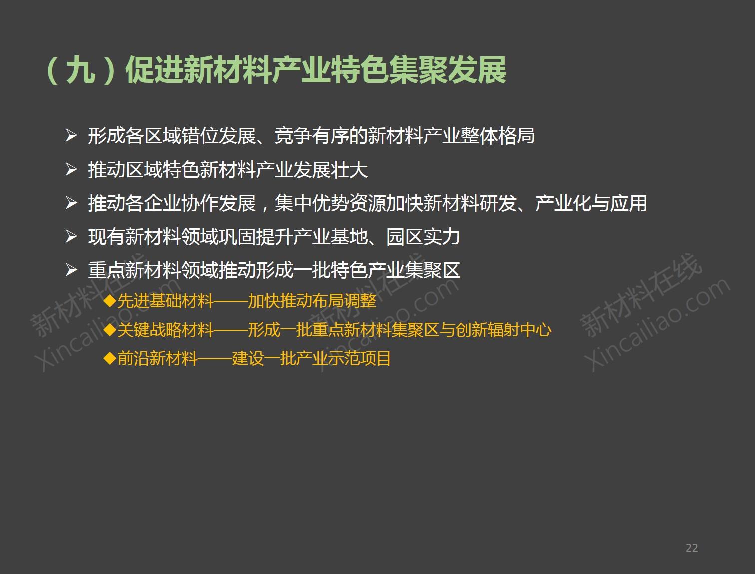 1月23日,中华人民共和国工业和信息化部官方网站正式公布《新材料产业发展指南》(工信部联规〔2016〕454号,以下简称《指南》)。《指南》从突破重点应用领域急需的新材料、布局一批前沿新材料、强化新材料产业协同创新体系建设、加快重点新材料初期市场培育、突破关键工艺与专用装备制约、完善新材料产业标准体系、实施“互...