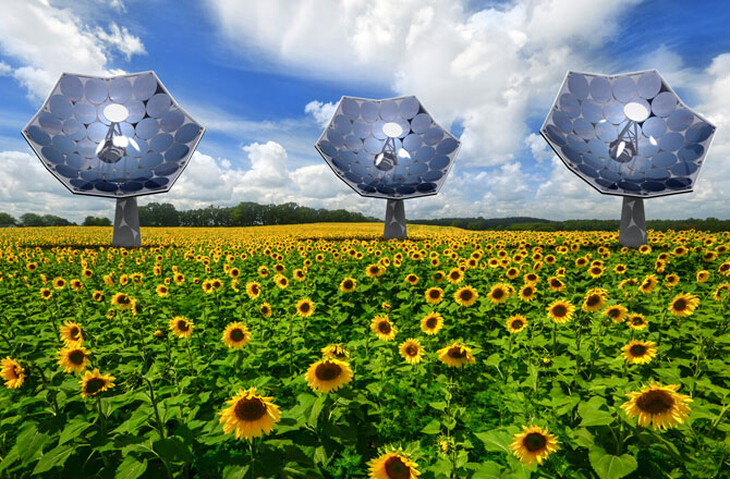 利用太阳光发电已经不是什么新鲜事。但是,目前IBM与Airligh Energy 公司进行合作,他们已经找到了一种能够一次性来解决两个问题的方法。他们已经开发出了30英尺向日葵形的太阳能集中器,这个太阳能集中器能同时发电和淡化饮用水。这项技术的两种用途使它在在淡水贫乏的炎热气候下也可很好地工作。 被称作高聚集光伏热力系统...