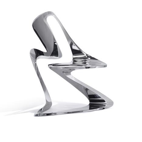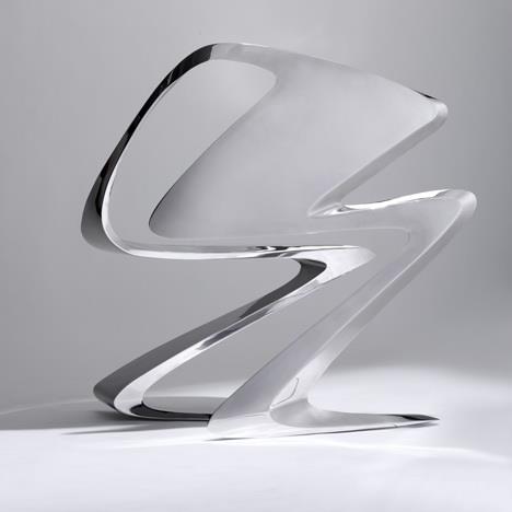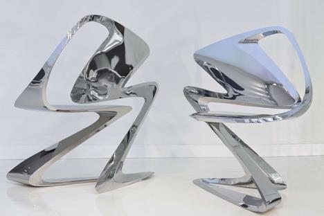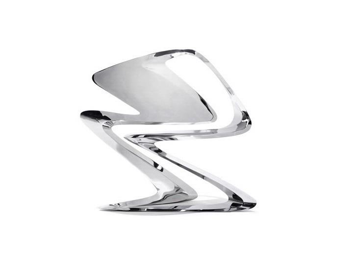 这是扎哈设计的新品,一款Z字形的时尚作品,椅子全部用不锈钢做成,全球限量24个。