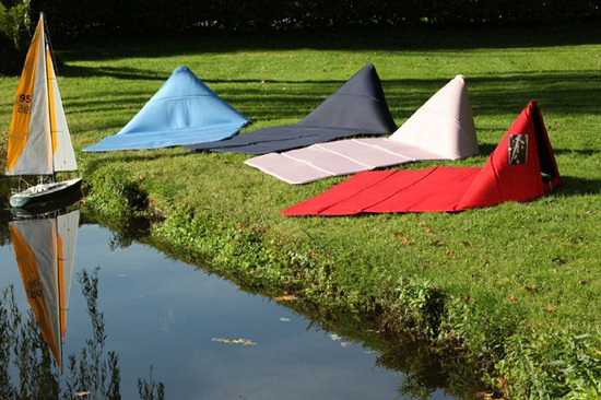 这真是个让人欢喜的设计,说它是后备箱必备可真不过分,如果能买到的话(暂时还未量产)~ 它折叠起来就像一块毛毯,展开铺到地上将一头的带子扣紧,就可以变成一个带靠背的躺椅垫。嗯,很适合带着它和她回外婆家一起,到村头土坡上看日落…